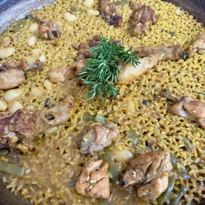 La auténtica: con pollo de corral, conejo, judías verdes, garrofón, y azafrán