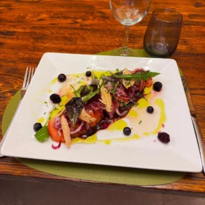 Con dados de manzana y lomitos de sardina ahumada