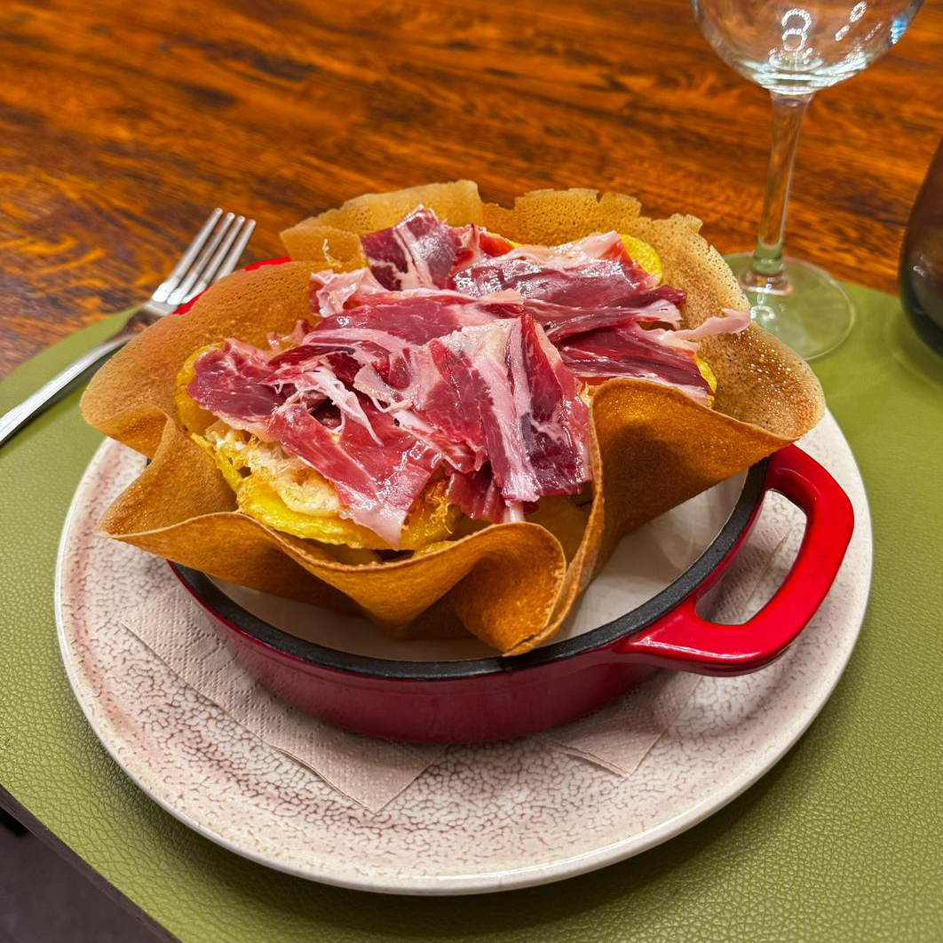 La receta clásica con su guarnición de virutas de jamón y huevo