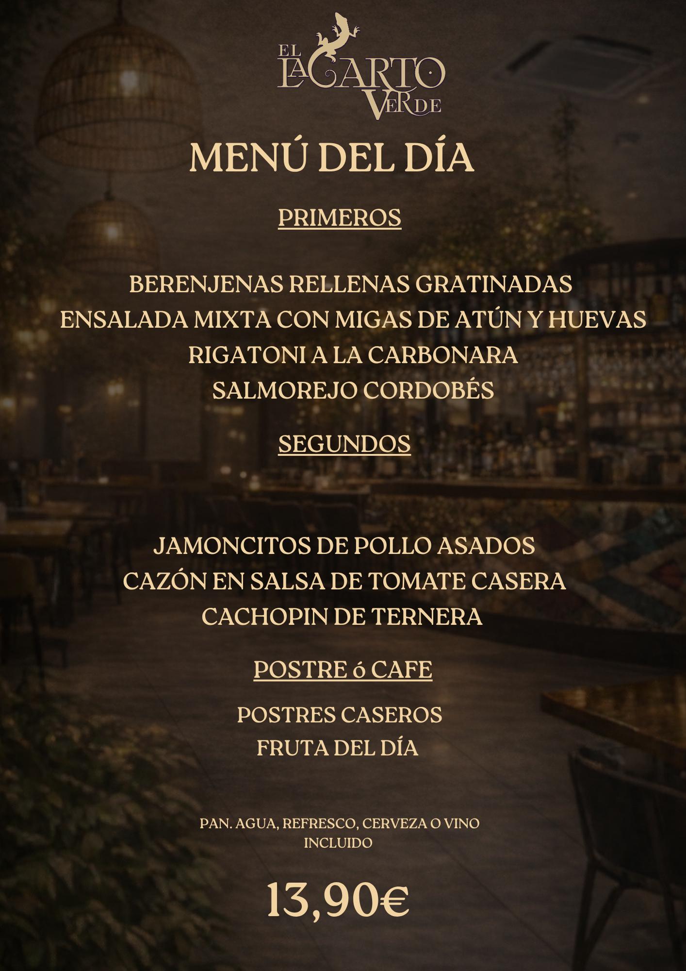 Si buscas el mejor sitio para disfrutar de un excelente menú del día con comida casera de verdad en un entorno exclusivo, ven a El Lagarto Verde. Porque no hace falta esperar al fin de semana para comer bien.